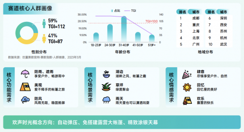 帳篷賽道解讀:該賽道抖音2022年搜索量同比增長228.6%,遠(yuǎn)高于行業(yè)整體水平。該賽道的興趣群體以 31-40 歲的男性為主,主要分布地區(qū)涵蓋多個(gè)熱門旅游城市。隨著生活水平的提高和對自然休閑需求的增加,多功能帳篷在未來將更受歡迎,防雨、美觀和防風(fēng)等多重特性將滿足人們對于舒適和便利的需求。除此之外,在技術(shù)創(chuàng)新、多樣化產(chǎn)品、個(gè)性化定制、環(huán)??沙掷m(xù)發(fā)展等趨勢上,這一領(lǐng)域?qū)⒂袕V闊的市場前景。