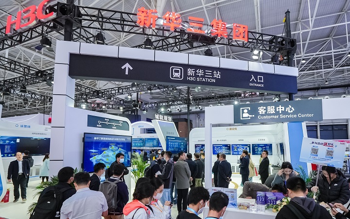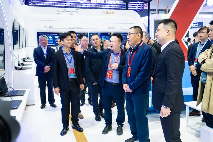 眾多行業(yè)領導蒞臨新華三展區(qū)參觀合影留念