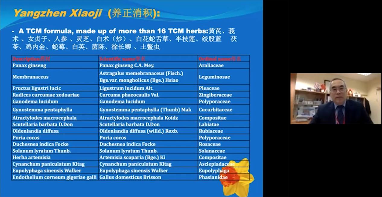 英國(guó)卡迪夫大學(xué)醫(yī)學(xué)院的姜文國(guó)教授以《腫瘤轉(zhuǎn)移的機(jī)制與治療》為主題,就腫瘤轉(zhuǎn)移的機(jī)制及中醫(yī)藥在腫瘤防治中的療效和優(yōu)勢(shì)進(jìn)行了詳細(xì)解讀。姜文國(guó)教授指出,養(yǎng)正消積膠囊作為一種廣譜抗腫瘤中藥,與抗血管新生的靶向藥物聯(lián)合應(yīng)用后,可降低或延緩這些靶向藥耐藥性的發(fā)生。早期的系列臨床研究發(fā)現(xiàn),腫瘤患者在化療前就開始服用養(yǎng)正消積膠囊,可發(fā)揮增效減毒的作用,不僅能增加患者對(duì)化療藥物的敏感性,提高療效,還能緩解患者癥狀,提高患者生活質(zhì)量,減少疲勞癥狀、食欲降低等化療副反應(yīng)。這些研究涉及到胃癌、胰腺癌、肺癌和乳腺癌等多種腫瘤類型。
