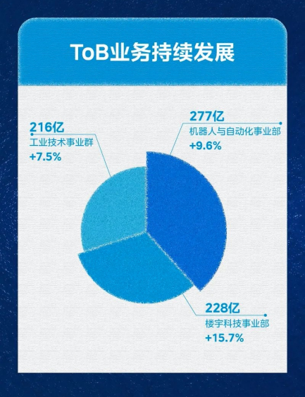 其中,智能家居事業(yè)群要實現(xiàn)高質量增長,確保穩(wěn)定、持續(xù)的盈利能力和現(xiàn)金流;要通過創(chuàng)新變革,突破性解決非優(yōu)勢品類、新興品類、高端品牌等方面發(fā)展中的問題和挑戰(zhàn)。同時堅定發(fā)展第二引擎,著力發(fā)展機器人與自動化、樓宇科技和新能源等核心ToB業(yè)務;聚焦研發(fā)投入強度和體系建設,對標世界級標桿企業(yè)進行提升,同時積極布局海外業(yè)務,實現(xiàn)全球突破。