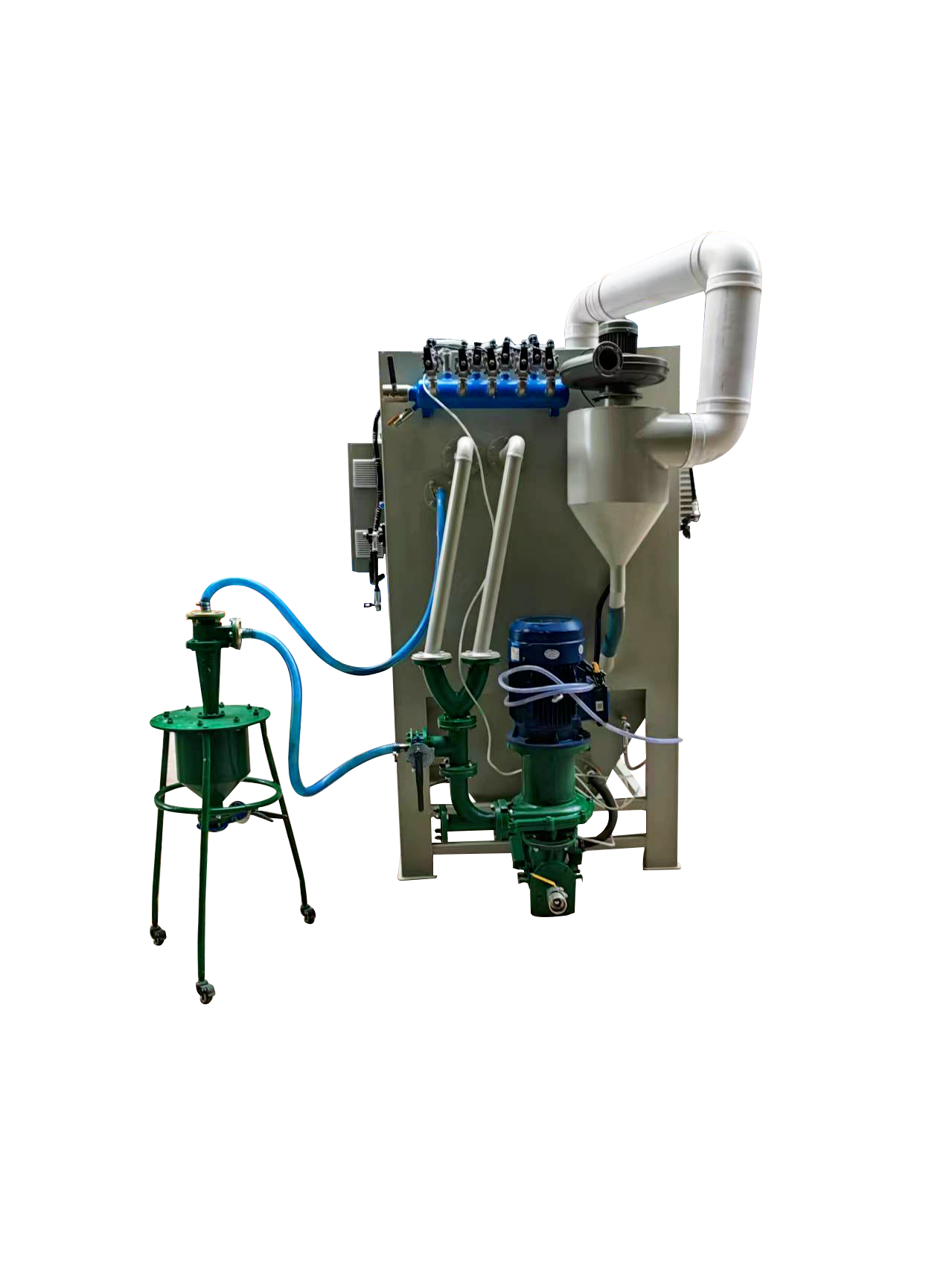 3, 配置專業(yè)的砂水泵,能高效混合磨料,噴砂后的產(chǎn)品手感更細(xì)膩、光澤度更好,和干式噴砂效果有明顯區(qū)別;